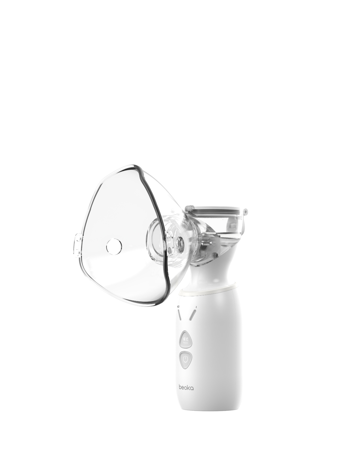 网式雾化器的雾化装置中带有网孔的雾化网片贴合有环状的压电陶瓷片,雾化网片可由金属材料制成也可由金属材料与高分子材料粘合而成。主机控制部分输出特定频率的电流及电压,当频率与雾化装置的谐振频率—致时,雾化网片随着压电陶瓷片进行简谐振动,将位于雾化网片—侧的药液经网孔挤到另—侧,形成气雾颗粒并喷出。