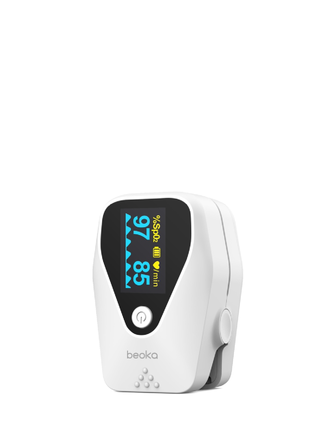 血氧仪的测量原理是根据HbO2和Hb对红光和红外光的不现吸收特性,通过测量穿透人体不同组织的特定波长光的吸收量,运用Lambert Beer定律建立数据处理经验公式。本产品采用光电血氧检测技术结合容积脉搏描记技术,用两束不同波长的光(波长660nm红光和波长898nm的近红外光)通过透射人体指端而由光敏组件获取测量信号,所获取信息经TI前端集成电路和微控制器处理后由显示屏显示结果。