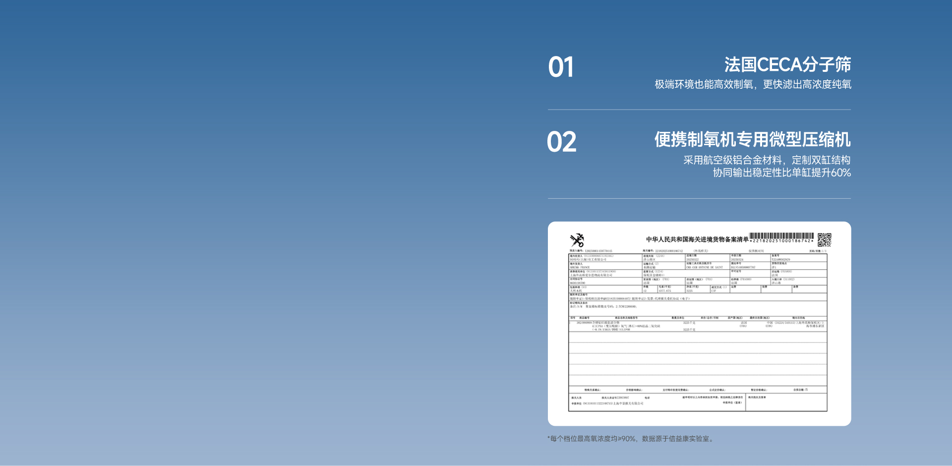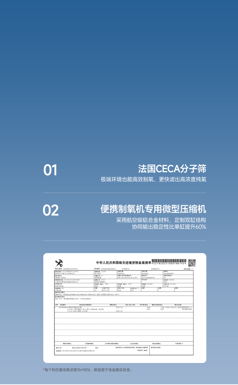 ·氧浓度:所有档位93%±3%